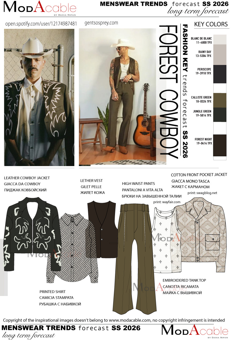 Весна-лето 2026 тренд мужской моды Лесной ковбой