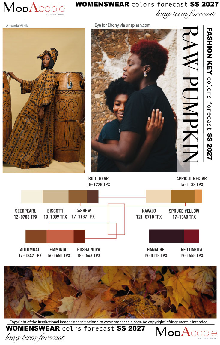 COLORI-TESSILE MODAPE 2027 tendenza colore donna Raw Pumpkin Pubblicato il Settembre 21, 2025Dicembre 15, 2025 da modacable Per la PE 2027, il trend colore Raw Pumpkin esplora nuance calde e soft ispirate al camel. Toni naturali e avvolgenti definiscono una palette elegante e versatile, ideale per valorizzare tessuti leggeri e silhouette essenziali. PE 2027 tendenza colore donna Petals PE 2027 tendenza moda tessile Sfocato
