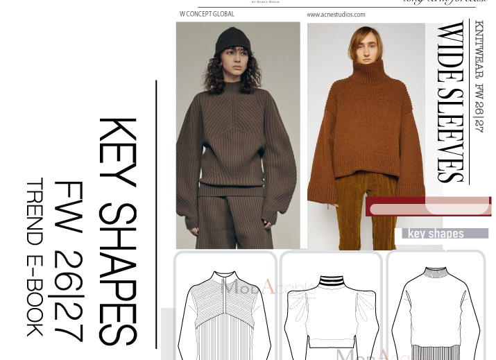 This trend book is the great start for any fashion design development! Uncovering in one edition 3 key moods, and 16 key shapes for FW 2026/27 knitwear woman.