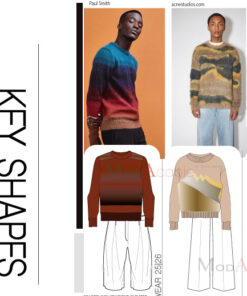 This trend book is the great start for any fashion design development! Uncovering in one edition 5 key moods, and 15 key shapes for FW 2025/26 men’s knitwear .