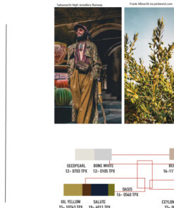 A detailed view with Pantone colors and Details definition of the 8 key macro trends developed already for you for the season with inspiration images and colors with references.
