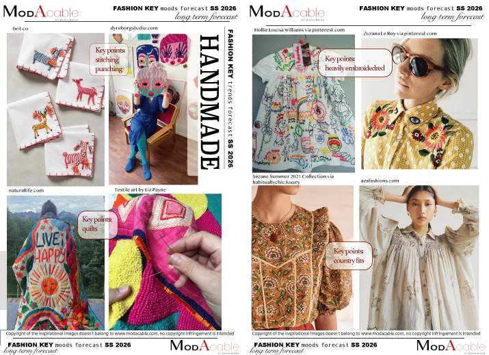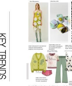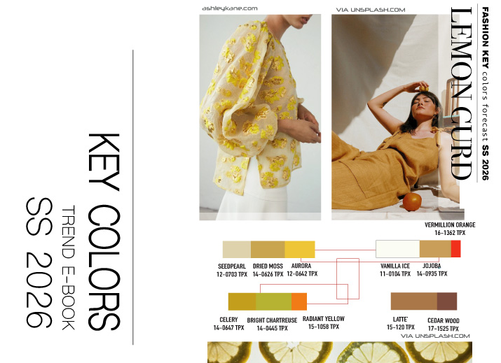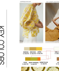 A detailed view with Pantone colors and Details definition of the 9 key macro trends developed already for you for the season with inspiration images and colors with references.