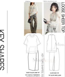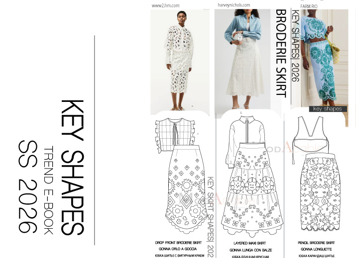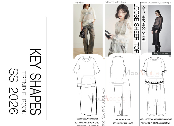 Key shapes trends 19 pages in PDF (divided in 4 sections: dress, tops, skirts, pants);